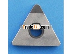 CBN tools made of CBN sintered material, is mainly used forcutting steel with low reactivity.CBN is roughly classified intotwo groups from the view point of microsturcture.One group is richin CBN content and has a structure of bonding CBN particles witheach other.It is used for cutting high hardened materials such ascemented carbide, cast iron, heat resistant alloy, and soon.Another group has CBN particles firmly bonded with a specialceramic bonding agent, and shos superior wear resistance andtoughness in cutting hardened steels and cast irons due to hestrong compactiong force of the CBN particles.